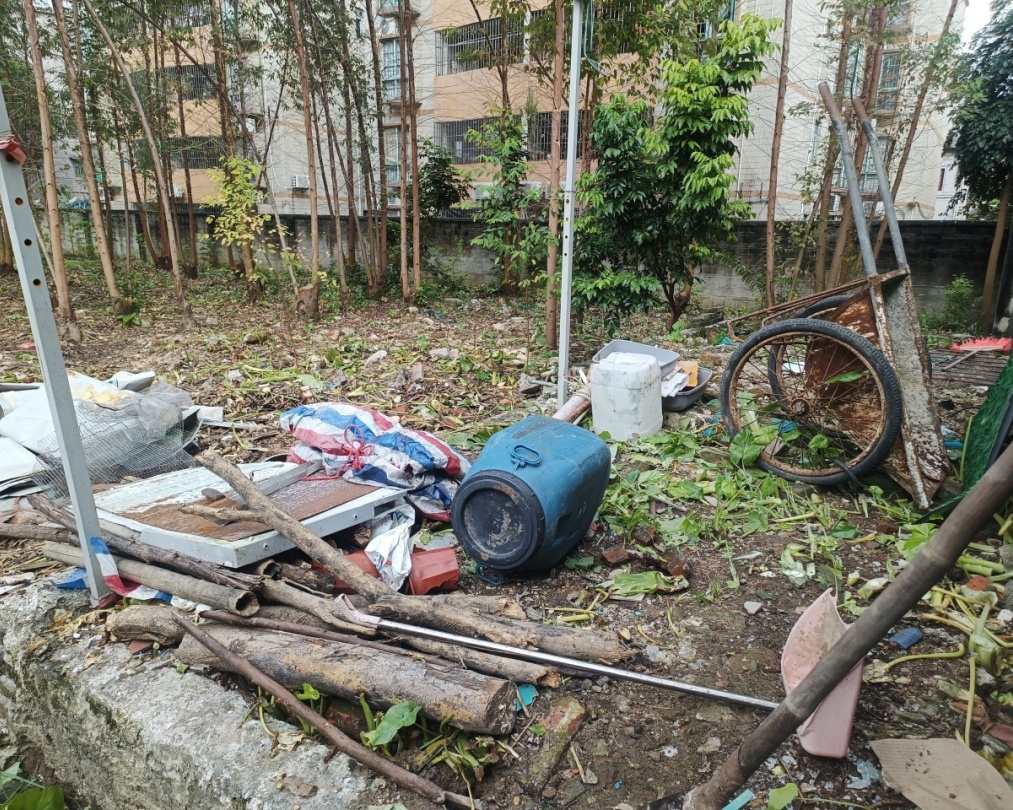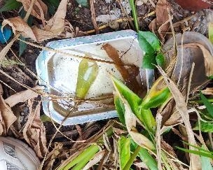 草丛、花木下塑料薄膜、瓶、盒、杯